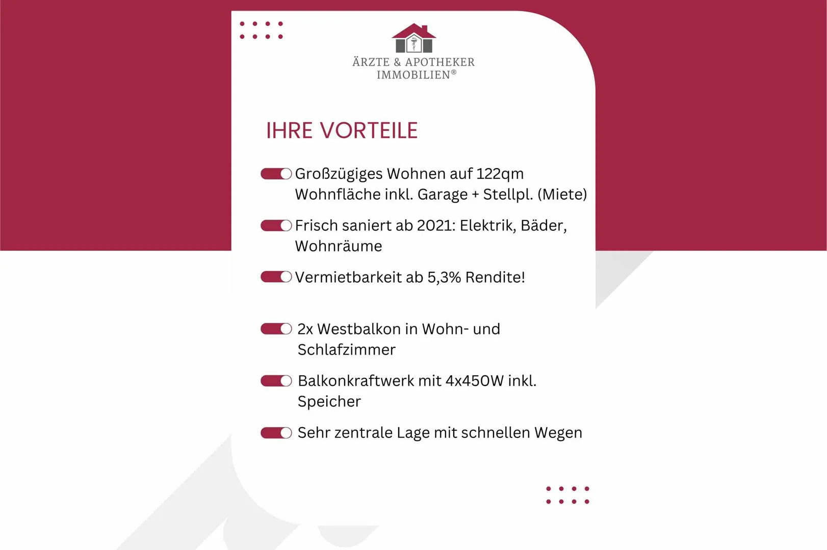 Eigennutz oder Vermietung: Sie haben die Wahl im vorderen Westen!