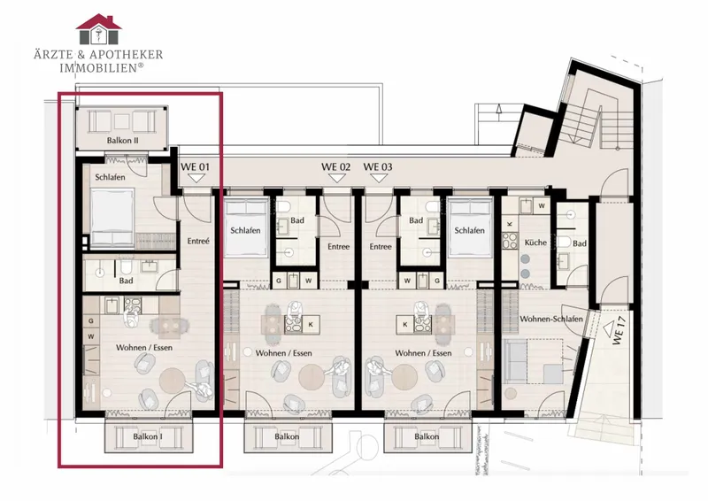 Luxus Apartment mit zwei Balkonen und stilvollem offenen Wohnbereich